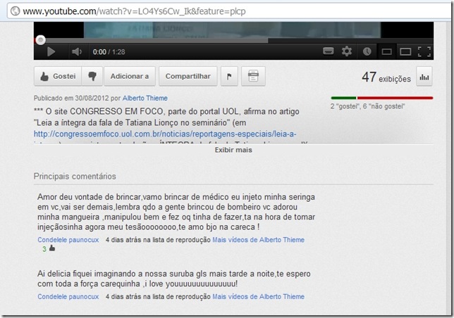 Estes são alguns dos comentários no nosso canal de vídeo, o “defesaheterovideos” no YouTube, em http://www.youtube.com/user/DefesaHeteroVideos.